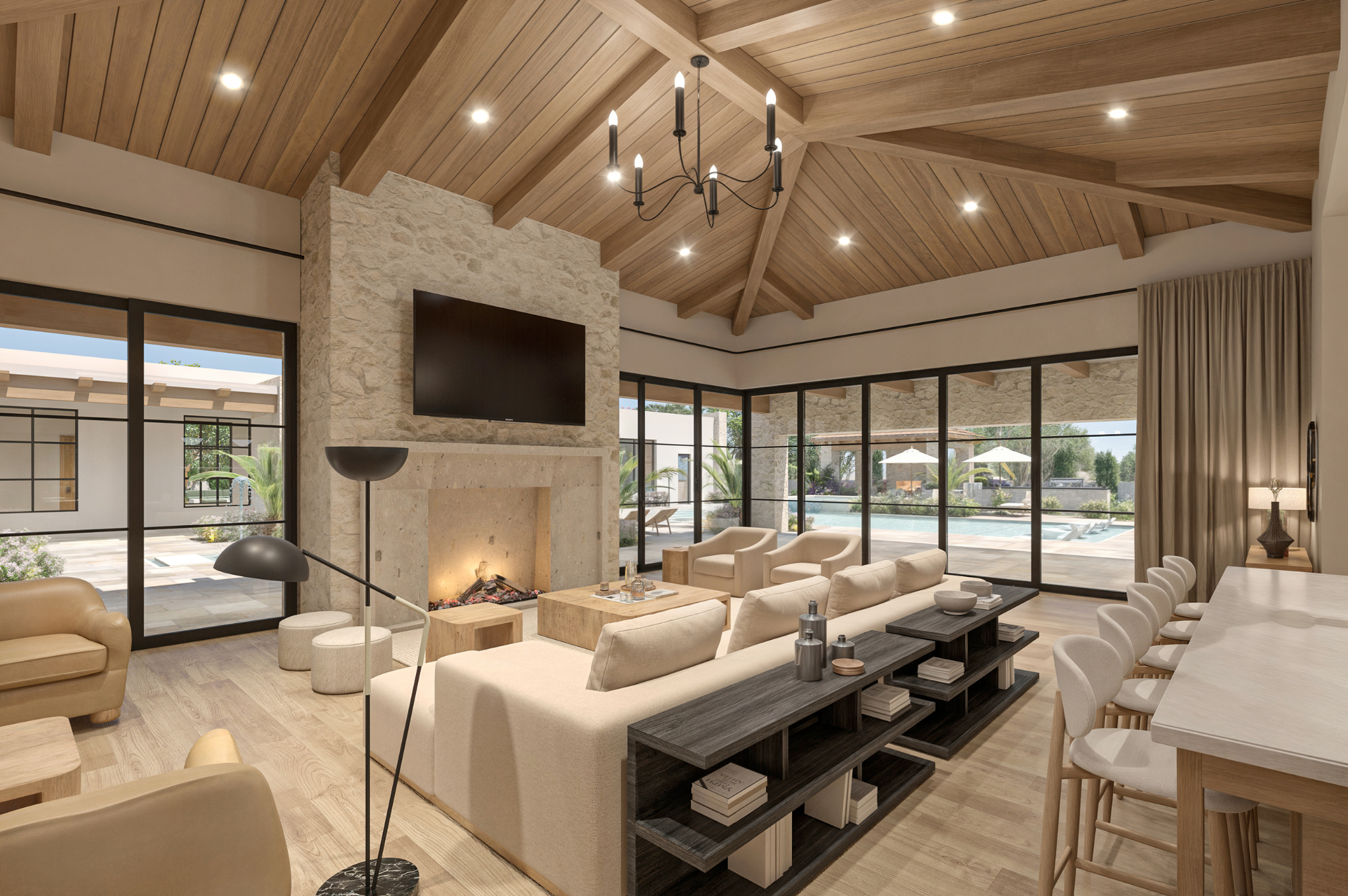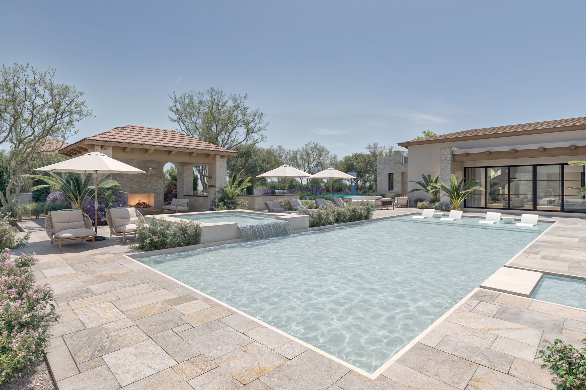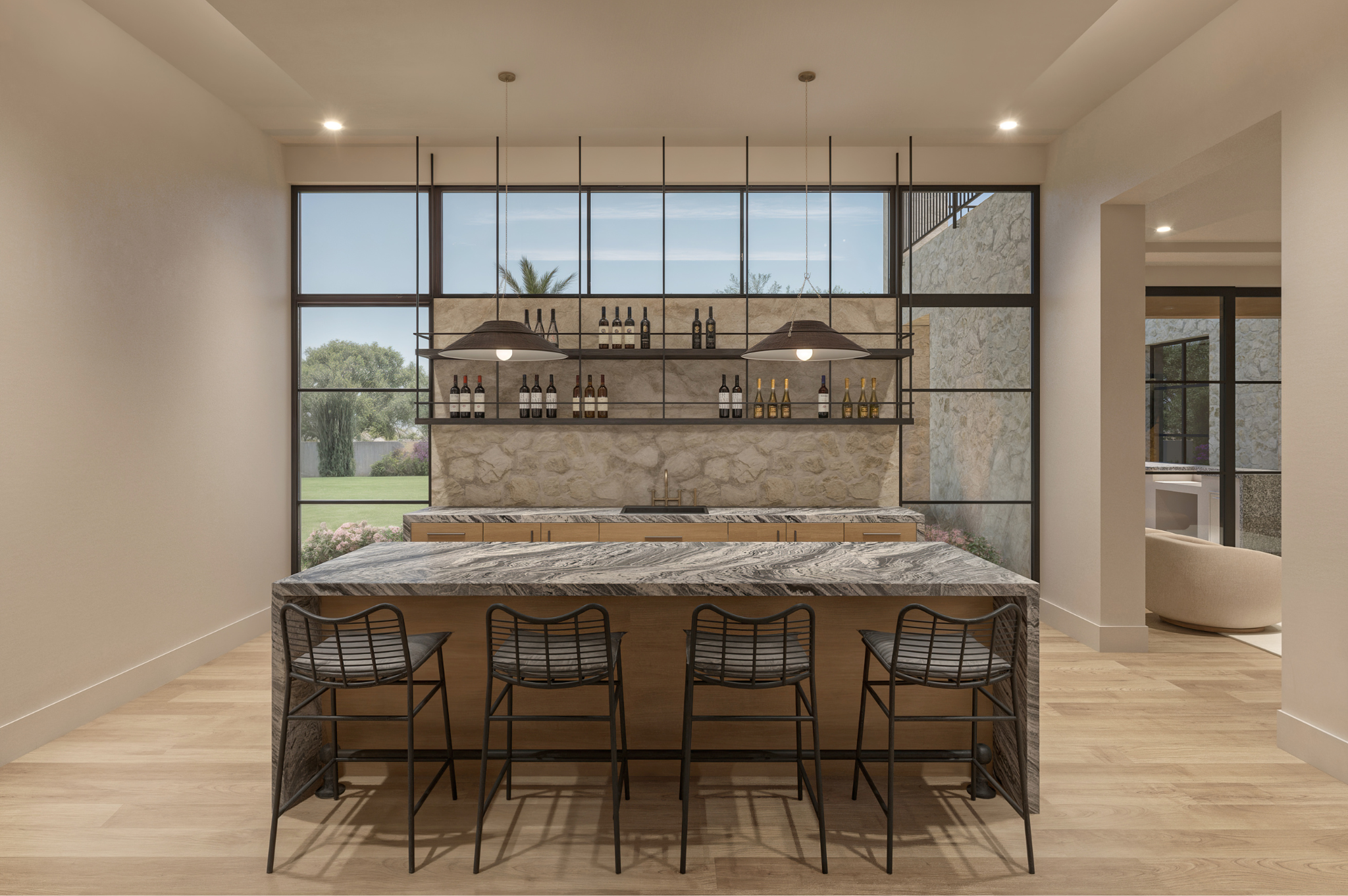 From the moment you step inside, you’re welcomed by soaring ceilings, warm textures, and breathtaking views to Camelback Mountain. The home’s elongated layout creates two distinct wings — one for the private primary suite, complete with its own living room, and another for guests and family, offering both connection and privacy. A fully independent casita with a kitchen, living area, bedroom, bath, and loft is perfect for extended stays. Thoughtfully designed amenities include a gym with steam room, a sport court for games like pickleball or basketball, and a theater room or golf simulator beside the bar for next-level entertaining.