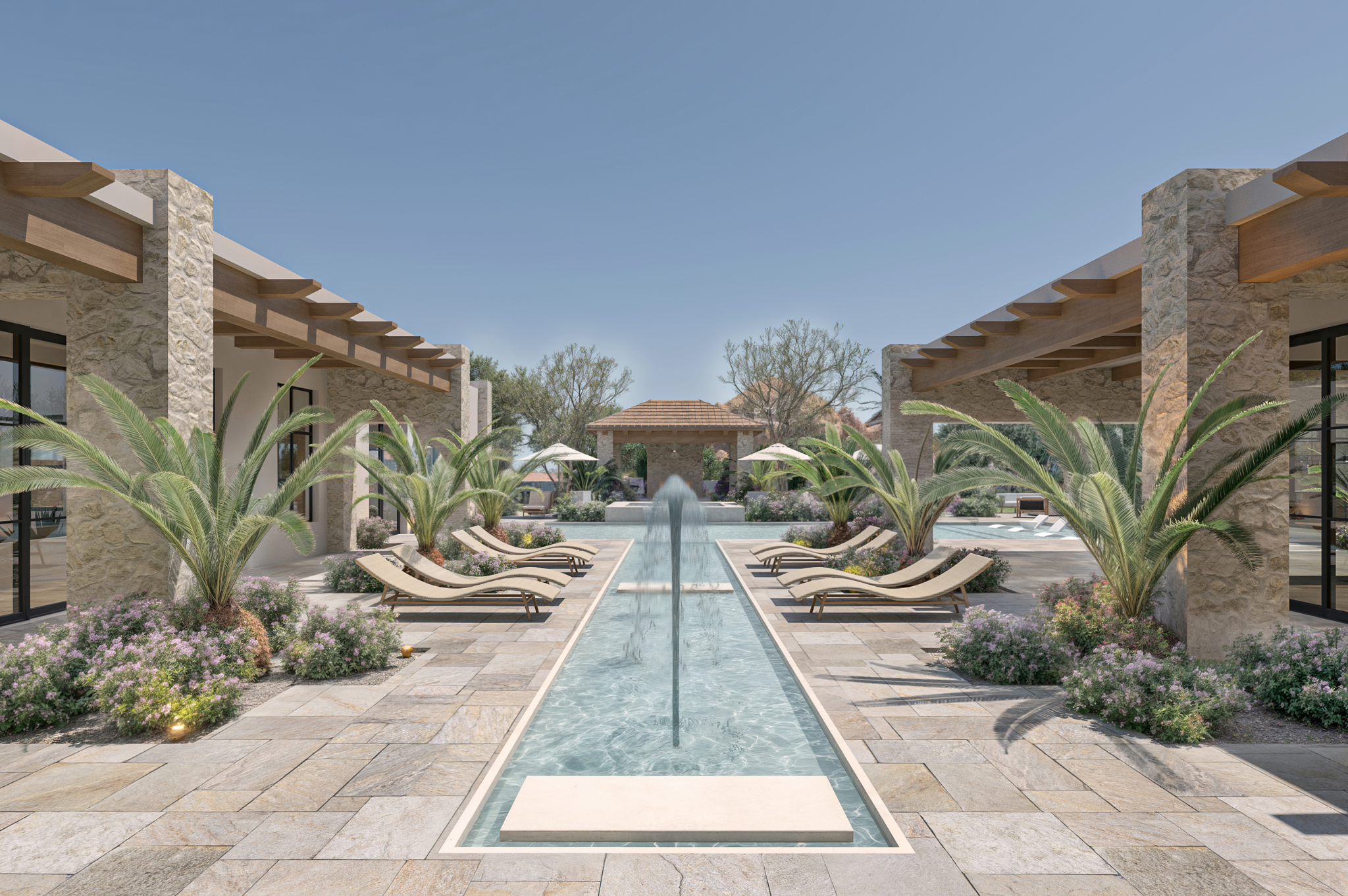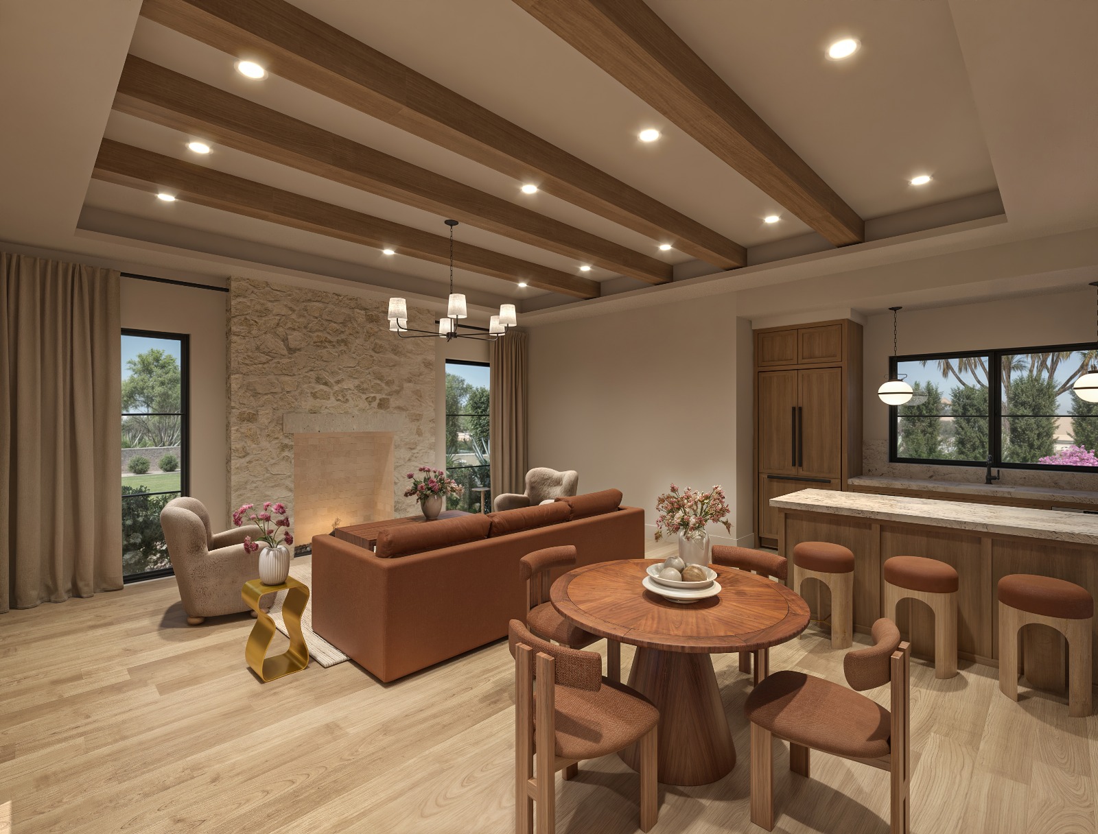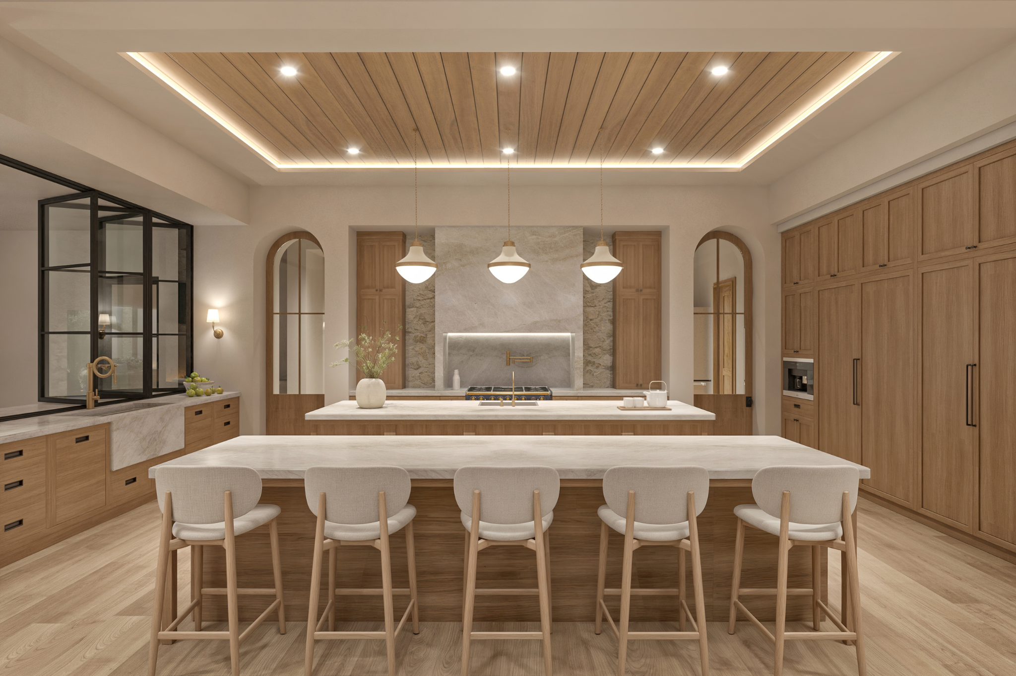 From the moment you step inside, you’re welcomed by soaring ceilings, warm textures, and breathtaking views to Camelback Mountain. The home’s elongated layout creates two distinct wings — one for the private primary suite, complete with its own living room, and another for guests and family, offering both connection and privacy. A fully independent casita with a kitchen, living area, bedroom, bath, and loft is perfect for extended stays. Thoughtfully designed amenities include a gym with steam room, a sport court for games like pickleball or basketball, and a theater room or golf simulator beside the bar for next-level entertaining.